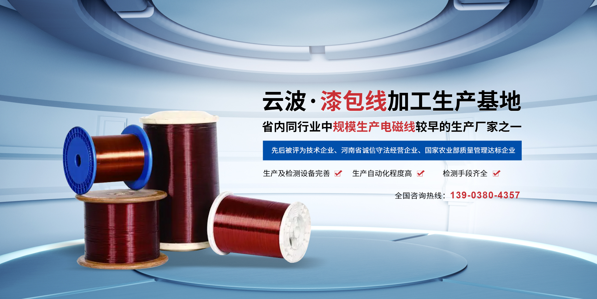 河南衛輝市云波漆包線有限公司(原衛輝市電磁線總廠)位于京廣鐵路以西,107國道從我公司大門前橫穿而過,交通十分便利。本公司創建于1974年3月,因企業發展需要,于2004年經工商局核準,由原衛輝市電磁線總廠更名改建為河南衛輝市云波漆包線有限公司。目前是省內同行業中規模生產電磁線較早的生產廠家之一,歷史悠久,技術力量雄厚。我公司主要生產130級及180級聚酯漆包銅圓線,各種規格的裸銅線等幾大系列。檢測手段齊全,技術力量雄厚,產品質量過硬,生產環境優美,生產許可證書號:(豫)XK06-001-00046。產品主要銷全國二十多個省市、自治區,供不應求,深受廣大客商的歡迎。公司在取得良好經濟效益的同時,積極回報社會。公司歷年來先后被評為技術企業、河南省誠信守法經營企業、國家農業部質量管理達標企業”。另外我公司生產自動化程度高,檢測手段齊全。擁有一支熟悉電磁線及自動化控制設備生產制造及管理的人才隊伍。生產工人90%以上為經驗豐富的技工。具有良好的生產環境和生產秩序。由于企業具有較高的管理水平,產品質量穩定可靠,企業已被國內眾多的大型電機廠,變壓器生產廠家和電工企業選定為合格供應商。  企業秉承"以用戶為中心,視質量為生命;重誠信守信用,確保用戶滿意。"的經營理念。企業精神是"誠信敬業協作進?。?。重質量、講誠信已作為我公司的立業之本。目前,公司正在以超常規,跳躍式速度發展向著規模化、產業一體化發展目標邁進,為實現公司提出的2005年產值6000萬元,2010年產值2億元的宏偉目標而努力奮斗。